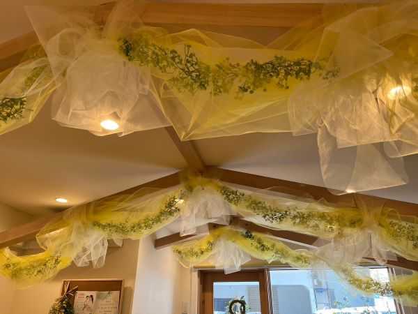 西日暮里のミモザカフェにてママ学校2日目を開催しました。開催日は国際女性デーの翌週、ミモザカフェの店内はミモザ一色に飾られてとても素敵な雰囲気。