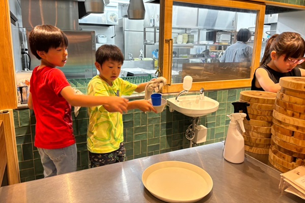 食後の食器拭きも、率先して行うこどもたち。